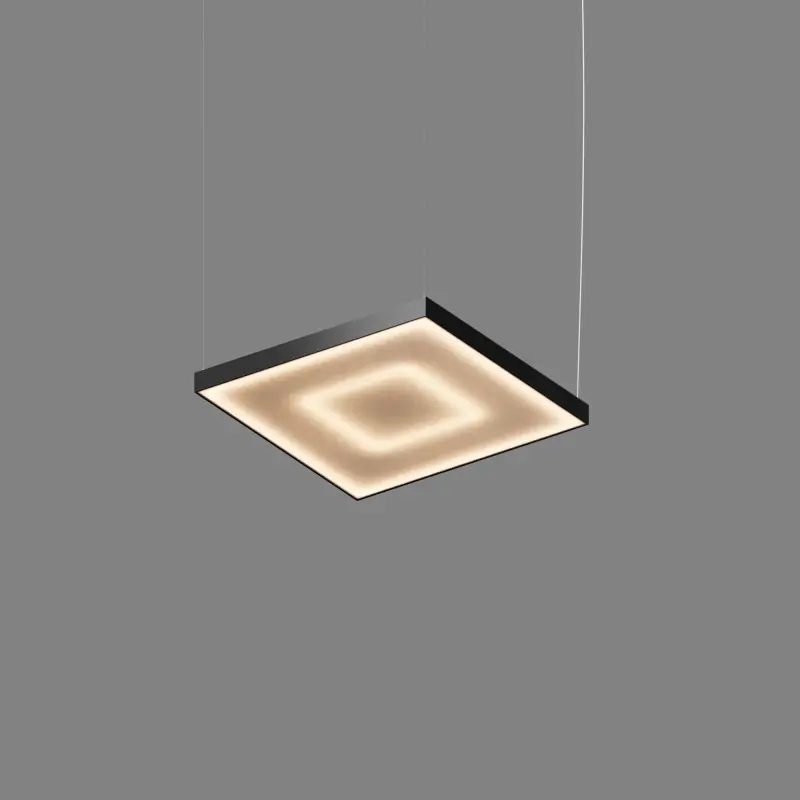 AGI KVADO - Серия функциональных подвесных крупногабаритных светодиодных светильников квадратной формы для декоративного и функционального освещения. Большой выбор размеров — от компактных (650x650 мм) до крупногабаритных, с размером 1200х1200 мм., — позволяет находить решения для освещения разнообразных помещений, в том числе с высокими потолками. Этот светильник для больших помещений отличается низкой потребляемой мощностью, что позволяет снижать расходы на электроэнергию без потери уровня освещенности. Так же доступна версия для «зенитных фонарей».