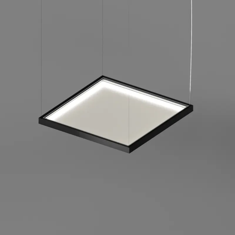 AGI KVADO - Серия функциональных подвесных крупногабаритных светодиодных светильников квадратной формы для декоративного и функционального освещения. Большой выбор размеров — от компактных (650x650 мм) до крупногабаритных, с размером 1200х1200 мм., — позволяет находить решения для освещения разнообразных помещений, в том числе с высокими потолками. Этот светильник для больших помещений отличается низкой потребляемой мощностью, что позволяет снижать расходы на электроэнергию без потери уровня освещенности. Так же доступна версия для «зенитных фонарей».