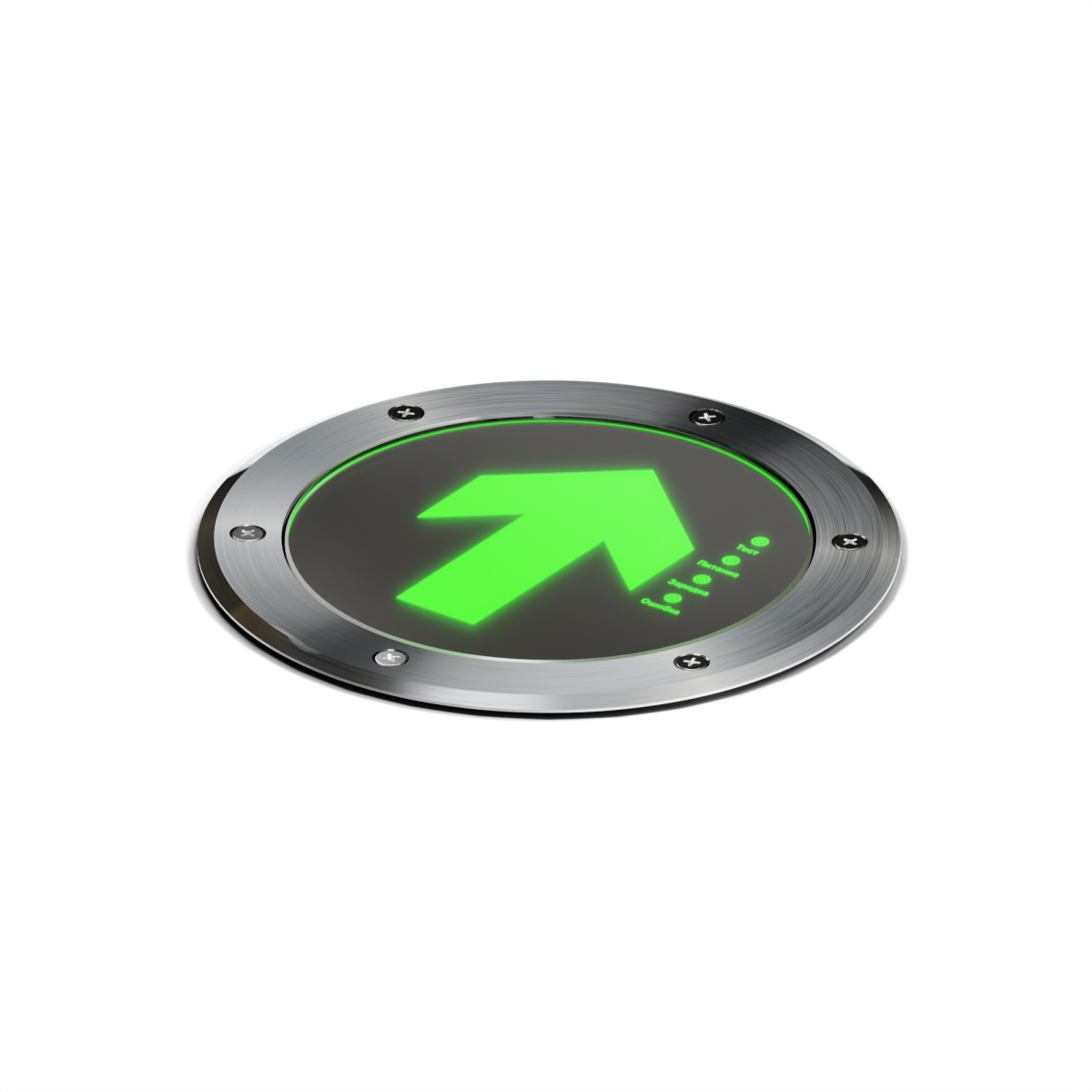 Эвакуационный указатель для встраивания в пол, обеспечивающий надежную навигацию в сложных условиях. Металлический корпус и бронированное стекло выдерживают нагрузку до 5 тонн, что позволяет использовать его в проходимых зонах, включая пути движения транспорта. Зеленая светодиодная подсветка создает четкое направление для эвакуации.