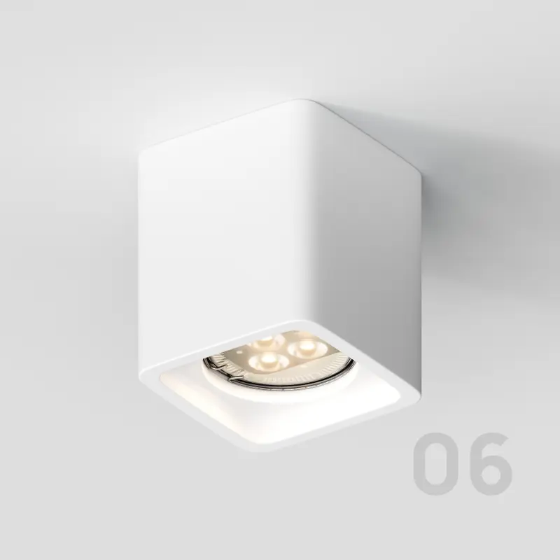 - ATOMA 06 – светильник кубической формы со скругленными ребрами. Тип: downlight (Источник света не утоплен в корпус светильника);