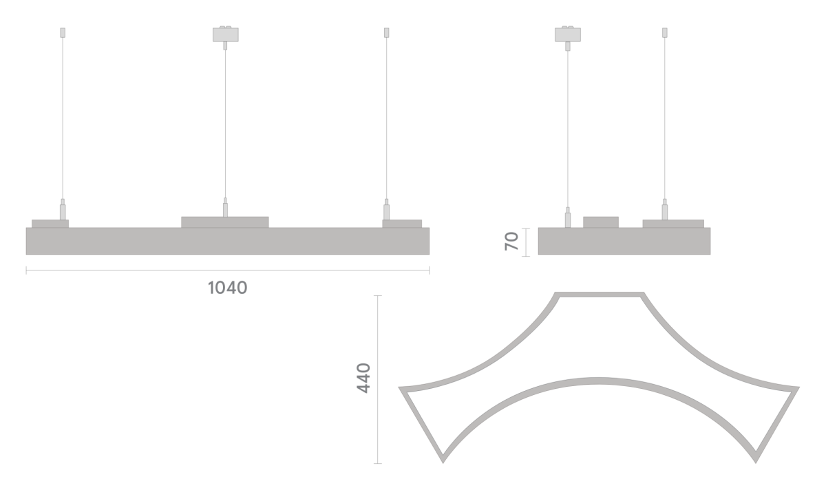 AXE SYSTEM P 26W 3000K Ra90 T60 220V/Св-к LED димм. DALI, 1040x440 мм (подвес 3м) (БОСМА)ЧЕРНЫЙ |