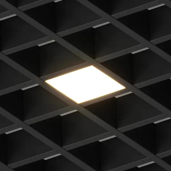 Помимо своего необычного внешнего вида, светильники обладают массой особенностей, выгодно отличающих серию CHECKERS от всего, что было придумано ранее для потолков Грильятто, а именно, высокоэффективные светодиодные модули, драйверы, отвечающие всем требованиям по электромагнитной совместимости, пульсации и множество вариантов размещения в ячейках, как хаотично, так и в виде композиций из элементов светильников данной серии.