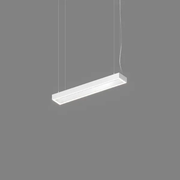 Корпус светильника выполнен из алюминия, окрашен порошковой краской. Драйвер (блок питания) интегрирован в корпус светильника, что упрощает монтаж, так как нет необходимости прятать драйвер за потолок или использовать дополнительный бокс. Матовый рассеиватель обеспечивает равномерную засветку и отсутствие пикселизации. В стандарте предусмотрены версии с диммированием по 1-10V или протоколу DALI.