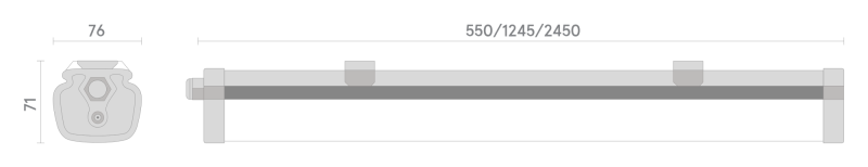 В ассортименте представлены три модели: 16W (550x76x71 мм, вес 0,7 кг); 38W (1245x76x71 мм, вес 1,3 кг); 76W (2450x76x71 мм, вес 2,6 кг).