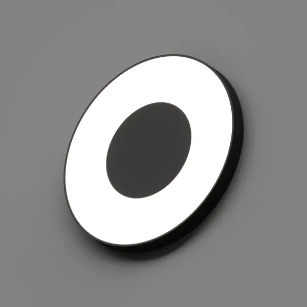 Cветодиодный светильник ECLIPSE создан на базе модели RINGO. Имеет форму диска с круглым декоративным элементом в центре, который может выполняться из металла, материала «под дерево», из зеркала и пр. Декоративно-функциональный светильник ECLIPSE обеспечивает приглушенное освещение и может применяться в качестве дополнительного источника света в интерьерах различной стилистики. Равномерно светящаяся поверхность обеспечивает высокое качество освещения и зрительный комфорт. Светильник имеет широкое светораспределение, что позволяет более эффективно освещать даже габаритные помещения и получать не только горизонтальную, но и вертикальную освещенность. Данная модель может использоваться в составе группы из нескольких светильников.