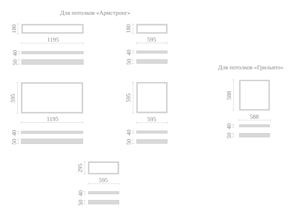 - Армстронг (1195x180 / 1195x595 / 595x595 / 595x180 / 595x295 мм)