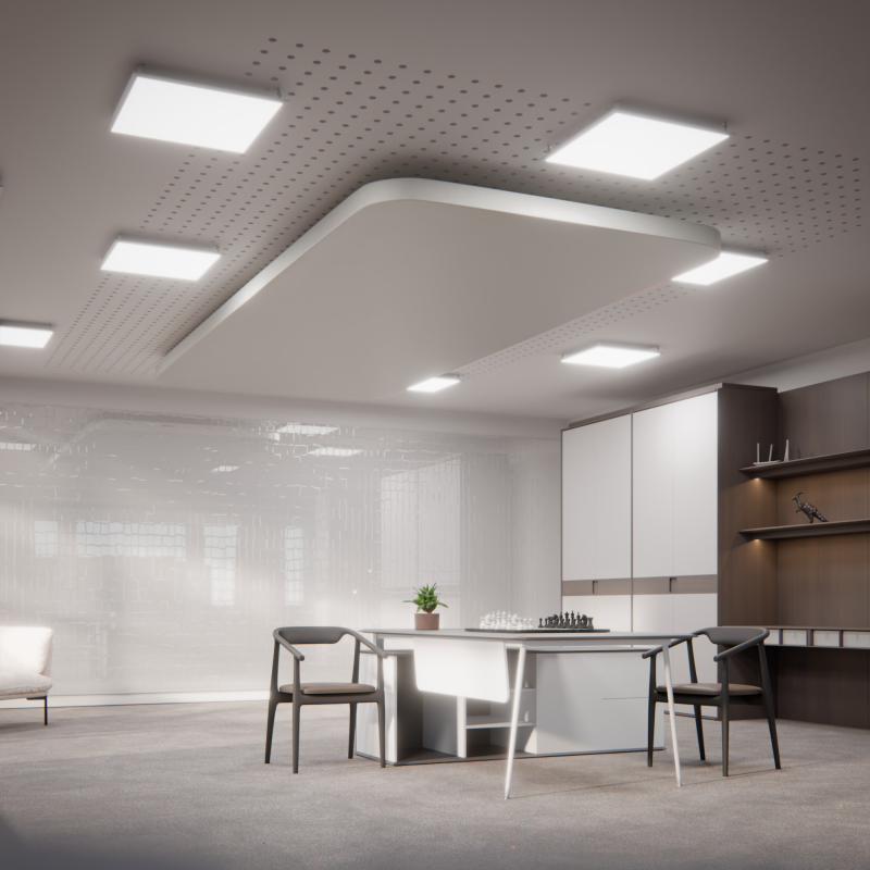 ENTRO SLIM ECO — ультратонкий светодиодный светильник для потолков типа Armstrong с равномерной заливающей засветкой. Толщина корпуса — всего 10 мм, что позволяет сохранить визуальную чистоту потолка и аккуратную геометрию пространства.