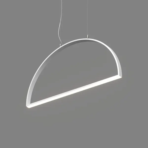 GLORIO – подвесные декоративные и функциональные светильники. Выполнены из алюминия и окрашены в черный или белый цвет в базовом исполнении. GLORIO – периметральный полукруглый светильник со световым элементом в нижней части. Серия является расширением семейства светильников с тонким профилем ORIO и может использоваться в композиции с другими моделями семейства.