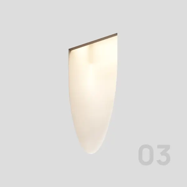- GRONA 03 – светильник вогнутой формы с отверстием, имеющим форму полуэллипса;