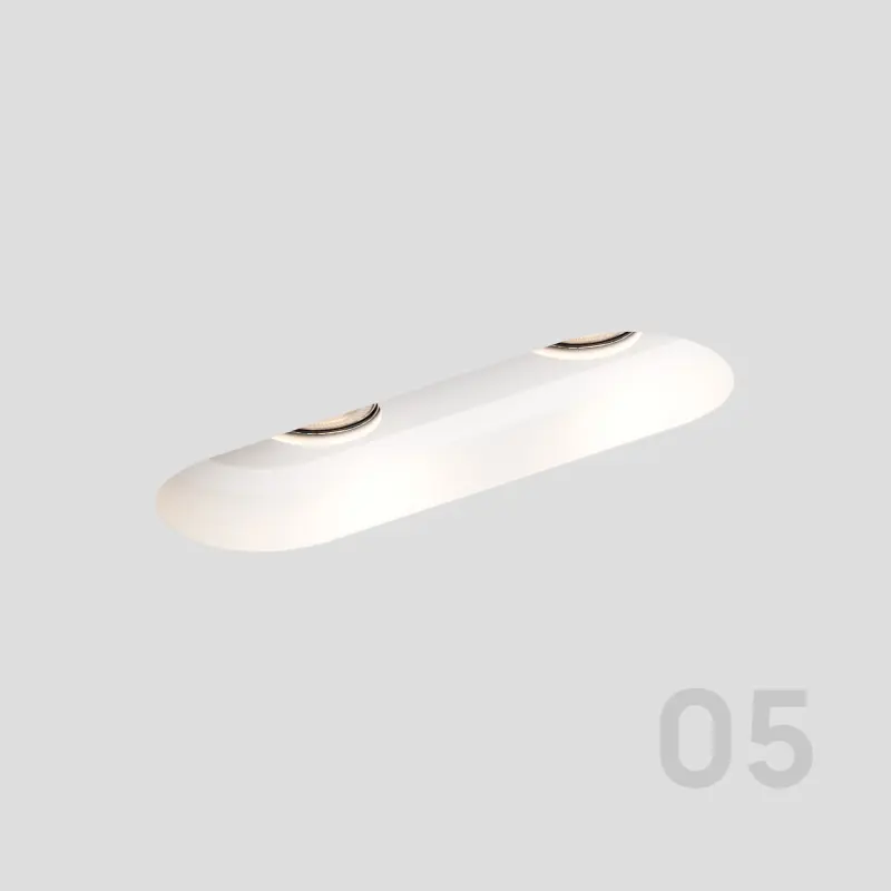 - GVENA 05 – светильник вогнутой прямоугольной формы с закругленными углами для двух источников света;