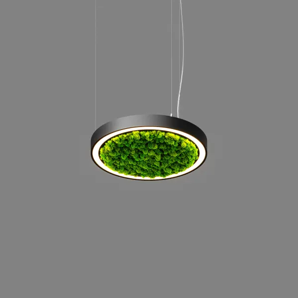 Серия светодиодных светильников кольцевой формы hoop! 50 moss (торговая марка - БОСМА). Серия является декоративной версией светильника hoop!. Внутренняя часть светильника украшена стабилизированным мхом зеленого цвета.