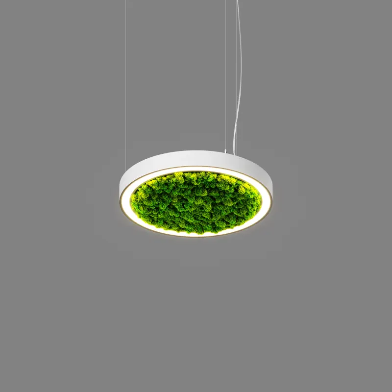 Серия светодиодных светильников кольцевой формы hoop! 50 moss (торговая марка - БОСМА). Серия является декоративной версией светильника hoop!. Внутренняя часть светильника украшена стабилизированным мхом зеленого цвета.