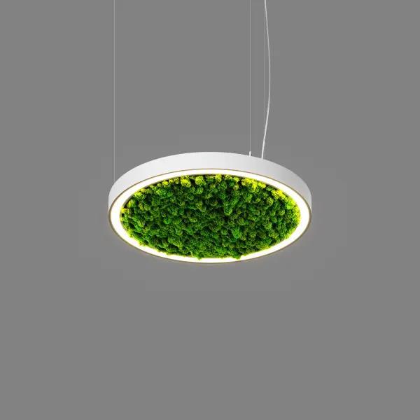 Серия светодиодных светильников кольцевой формы hoop! 50 moss (торговая марка - БОСМА). Серия является декоративной версией светильника hoop!. Внутренняя часть светильника украшена стабилизированным мхом зеленого цвета.