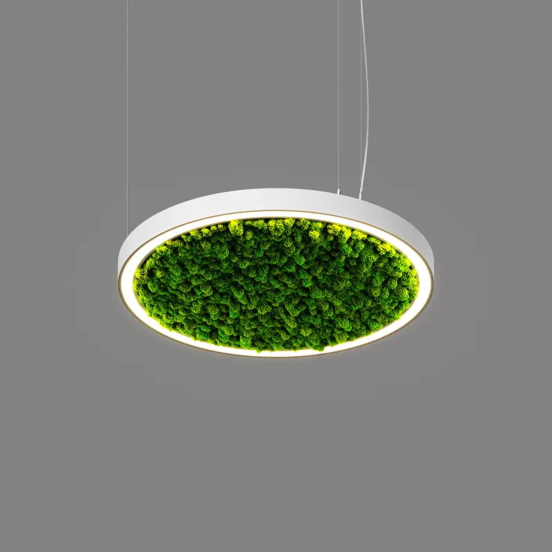 Серия светодиодных светильников кольцевой формы hoop! 50 moss (торговая марка - БОСМА). Серия является декоративной версией светильника hoop!. Внутренняя часть светильника украшена стабилизированным мхом зеленого цвета.