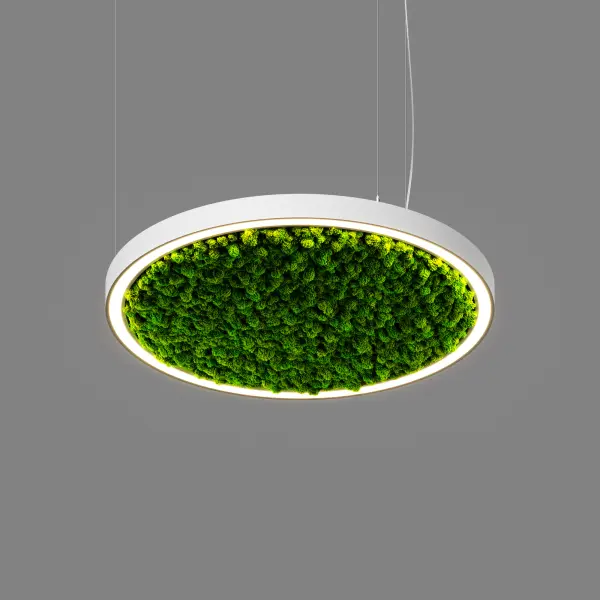 Серия светодиодных светильников кольцевой формы hoop! 50 moss (торговая марка - БОСМА). Серия является декоративной версией светильника hoop!. Внутренняя часть светильника украшена стабилизированным мхом зеленого цвета.