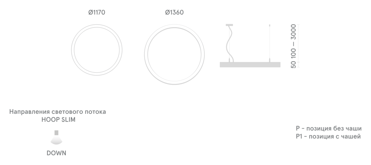 Серия светодиодных светильников кольцеобразной формы HOOP SLIM с самым тонким корпусом из всех моделей кольцевых светильников версий DOWN (с направленным вниз световым потоком). Ширина и высота профиля составляет 50 мм.