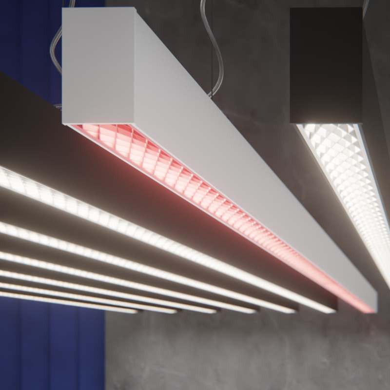 INI LED 60 получил новую выразительную деталь: сотовый блокиратор, который делает световой рисунок более собранным, а внешний вид светильника более архитектурным. Блокиратор помогает визуально углубить источник света, добавить модели аккуратный технологичный характер и снизить блескость светильника. При правильном использовании такое решение позволяет свести показатель UGR к минимальным значениям, повышая зрительный комфорт в пространстве. Это особенно важно для офисов, общественных, учебных и медицинских помещений, где свет должен быть не только эффективным, но и комфортным для длительного пребывания. Сам INI LED 60 предназначен для общего функционального освещения, выпускается в накладном и подвесном исполнении, имеет ширину 60 мм, высоту 100 мм, доступен в белом и чёрном цветах корпуса, с длинами до 2284 мм, цветовой температурой 3000К и 4000К, индексом цветопередачи Ra 90, а также версиями с диммированием 1–10V и DALI. Сотовый блокиратор доступен в трёх цветах: чёрный, белый и золотой.