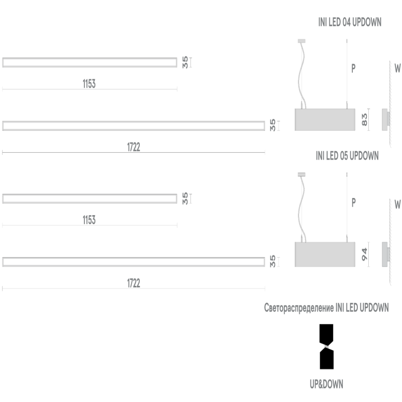 INI LED 04 SN 34W 3000K Ra90 T90/Св-к LED UPDOWN, 1153 мм (подвес 3м) (БОСМА) БЕЛЫЙ |