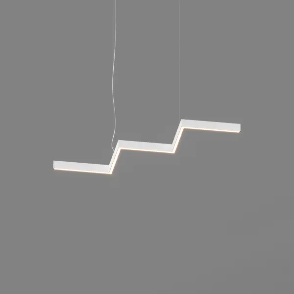 Серия подвесных светодиодных светильников зигзагообразной формы INI LED ZIGZAG 04 на основе подвесной модели INI LED 04 (торговая марка - БОСМА). Каждый светильник является готовым решением и может использоваться как самостоятельно, так и в составе модульной системы (при использовании коннекторов). Линейка включает различные конфигурации, которые можно комбинировать, составляя оригинальные композиции и формируя световой рисунок потолка. Корпус светильника выполнен из алюминия, окрашен порошковой краской. Матовый рассеиватель обеспечивает равномерную засветку без пикселизации. Установка с помощью цанговых подвесов, благодаря которым регулировка высоты осуществляется на самом светильнике, а не в месте крепления на потолке. Это сокращает время проведения монтажных работ и позволяет отрегулировать высоту светильника самостоятельно. Поворотные цанги, выдерживающие большой вес, позволяют надежно подвесить светильник в наклонном положении в составе оригинальной художественной композиции. Разработано и производится в России. Гарантия 3 года.