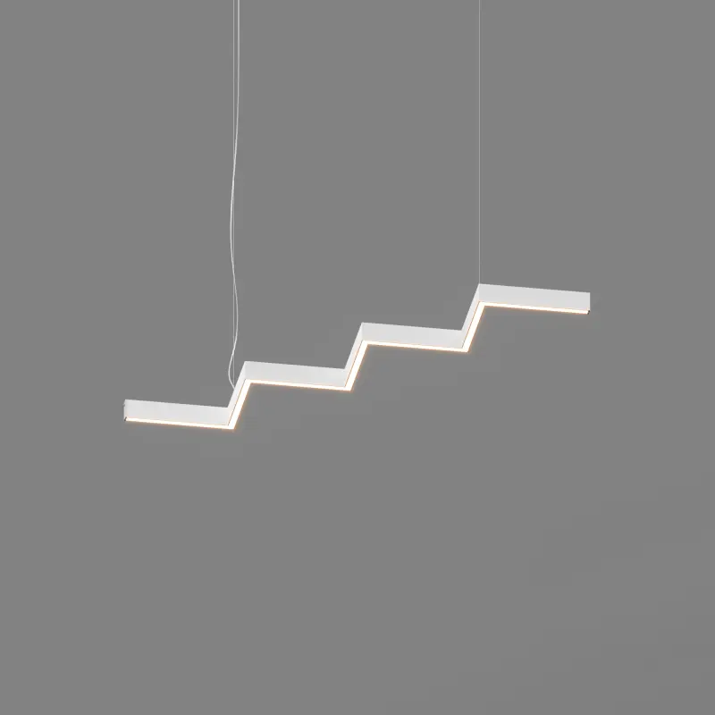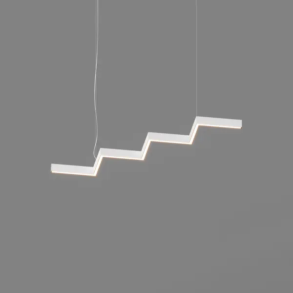 Серия подвесных светодиодных светильников зигзагообразной формы INI LED ZIGZAG 04 на основе подвесной модели INI LED 04 (торговая марка - БОСМА). Каждый светильник является готовым решением и может использоваться как самостоятельно, так и в составе модульной системы (при использовании коннекторов). Линейка включает различные конфигурации, которые можно комбинировать, составляя оригинальные композиции и формируя световой рисунок потолка. Корпус светильника выполнен из алюминия, окрашен порошковой краской. Матовый рассеиватель обеспечивает равномерную засветку без пикселизации. Установка с помощью цанговых подвесов, благодаря которым регулировка высоты осуществляется на самом светильнике, а не в месте крепления на потолке. Это сокращает время проведения монтажных работ и позволяет отрегулировать высоту светильника самостоятельно. Поворотные цанги, выдерживающие большой вес, позволяют надежно подвесить светильник в наклонном положении в составе оригинальной художественной композиции. Разработано и производится в России. Гарантия 3 года.