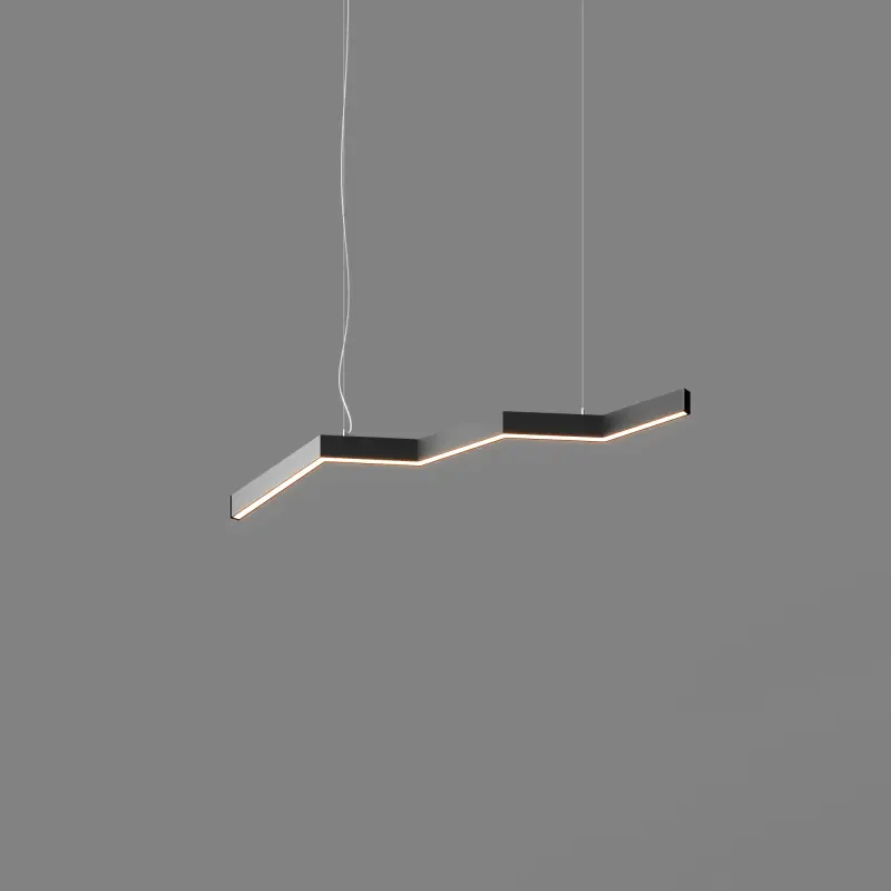 Серия подвесных светодиодных светильников зигзагообразной формы INI LED ZIGZAG 04 на основе подвесной модели INI LED 04 (торговая марка - БОСМА). Каждый светильник является готовым решением и может использоваться как самостоятельно, так и в составе модульной системы (при использовании коннекторов). Линейка включает различные конфигурации, которые можно комбинировать, составляя оригинальные композиции и формируя световой рисунок потолка. Корпус светильника выполнен из алюминия, окрашен порошковой краской. Матовый рассеиватель обеспечивает равномерную засветку без пикселизации. Установка с помощью цанговых подвесов, благодаря которым регулировка высоты осуществляется на самом светильнике, а не в месте крепления на потолке. Это сокращает время проведения монтажных работ и позволяет отрегулировать высоту светильника самостоятельно. Поворотные цанги, выдерживающие большой вес, позволяют надежно подвесить светильник в наклонном положении в составе оригинальной художественной композиции. Разработано и производится в России. Гарантия 3 года.