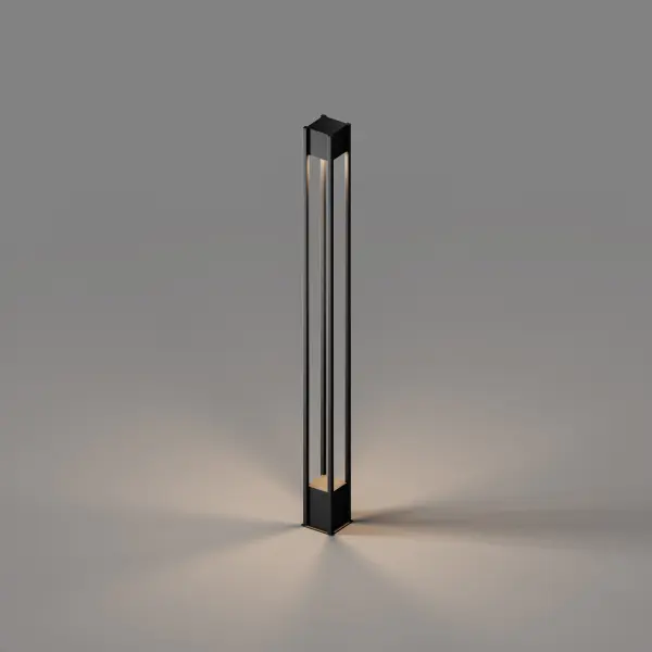 Светильник KANN от торговой марки БОСМА создан для экстерьерного освещения. Корпус модели представляет собой простую геометрическую фигуру, что позволяет органично вписать KANN в любое уличное пространство. Корпус имеет квадратное сечение и напоминает башню. Такой эффект достигнут за счет намеренного выноса несущих вертикальных опор за рамки основного корпуса. За счет сквозных отверстий KANN воспринимается менее массивным, чем другие светильники в ассортименте МДМ-ЛАЙТ. Световой модуль KANN расположен в верхней части светильника, свет направлен вниз.