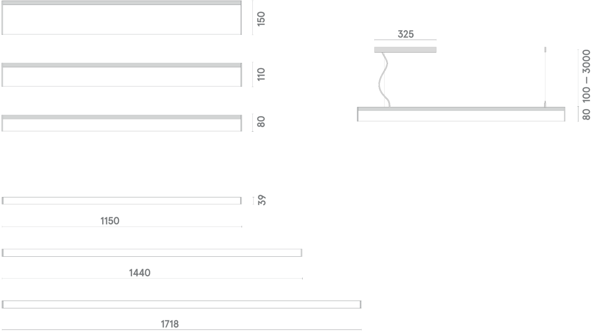 - увеличение длины подвеса и кабеля подключения (2000, 3000, 4000 мм);