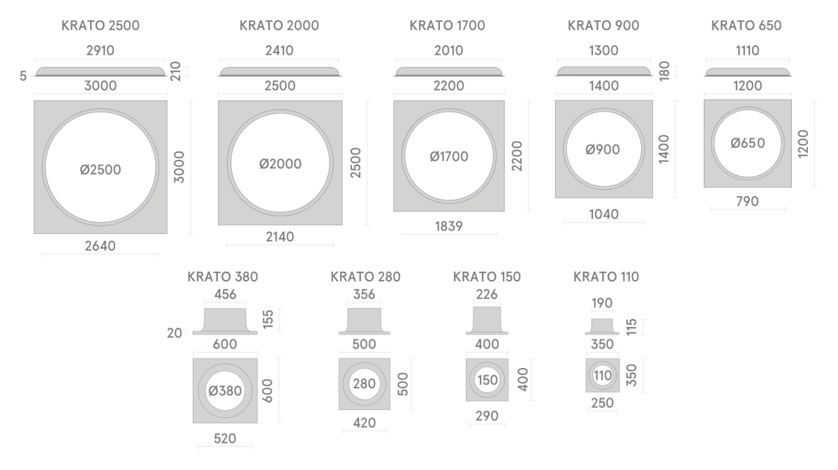 Новая серия дизайнерских светодиодных гипсокомпозитных светильников KRATO торговой марки БОСМА имеет необычную вогнутую форму, напоминающую кратер вулкана. Источник света светильника утоплен в корпус, что исключает эффект ослепления даже при самых широких углах обзора. Светильник интегрируется в гипсокартонную поверхность потолка или стены, образуя единую поверхность. Помимо необычной формы, данную модель также отличают разнообразие размеров, что делает возможным применение этих светильников для освещения помещений разных размеров: от небольших до крупногабаритных. В диаметре до 600мм засветка у светильника равномерная. Диаметр более 600мм засветка по периметру светильника (см. фото)