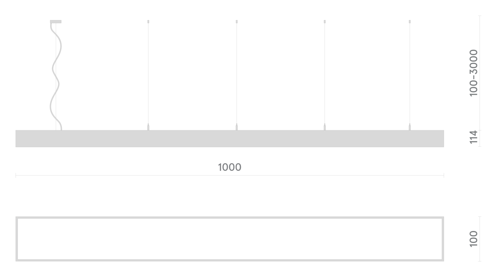 - увеличение длины подвеса и кабеля подключения (2000, 3000, 4000 мм);