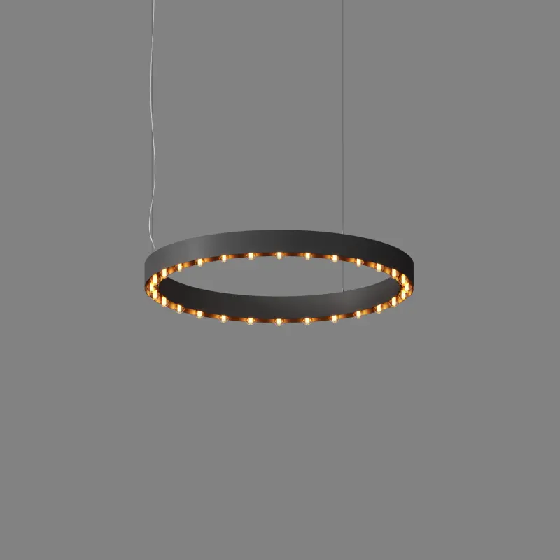 Дизайнерский светильник LADU для неформальных интерьеров сочетает ретро стиль и индустриальные материалы. Светильник имеет форму кольца. В пространство между внешней и внутренней плоскостью кольца устанавливаются источники света с цоколем E27.