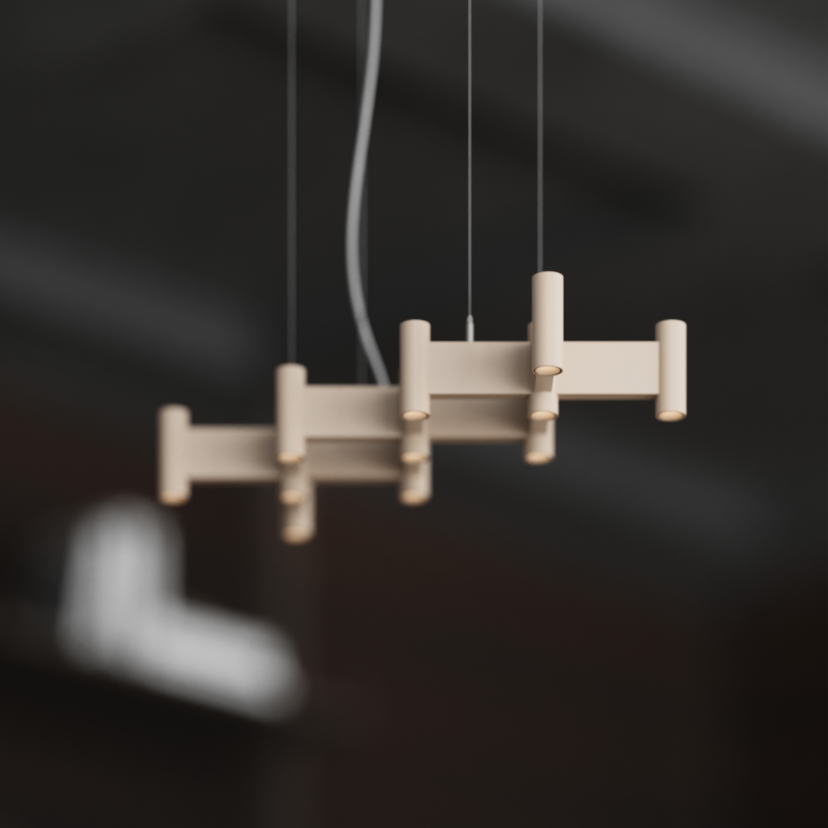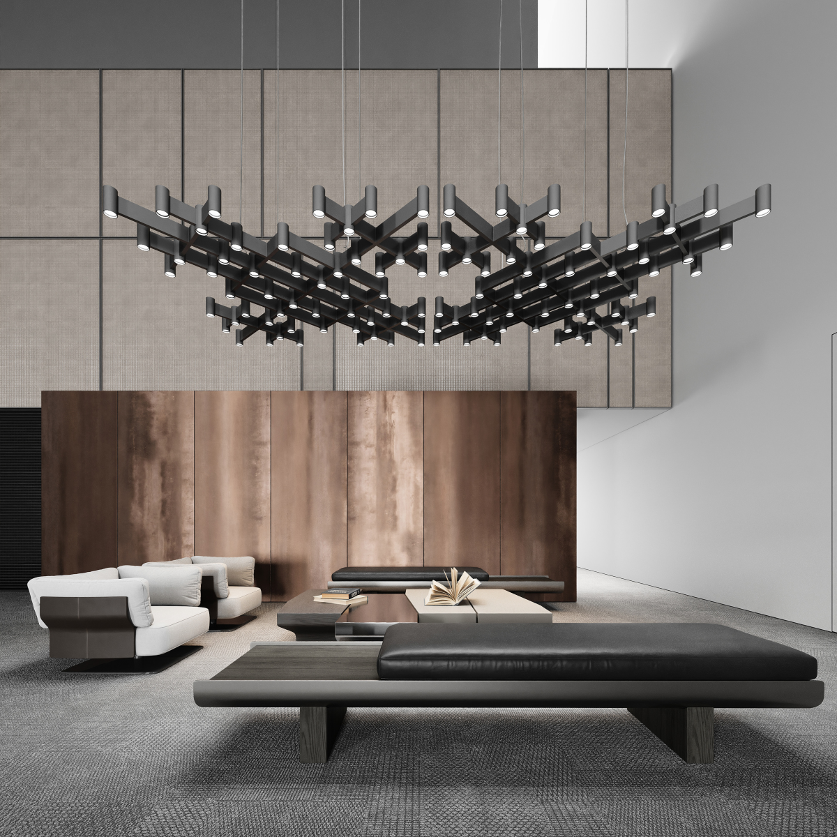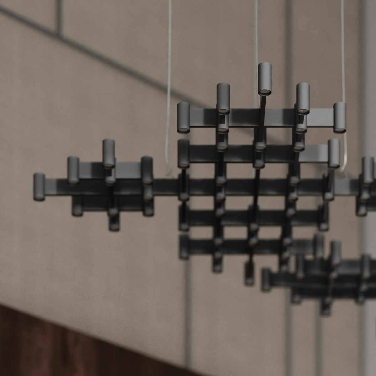 Серия позволяет создавать как лаконичные одиночные решения, так и сложные композиции для общественных и частных пространств. LATTI органично работает в лобби, переговорных, зонах ожидания, ресторанах и других интерьерных сценариях, где светильник становится полноценным элементом дизайна.