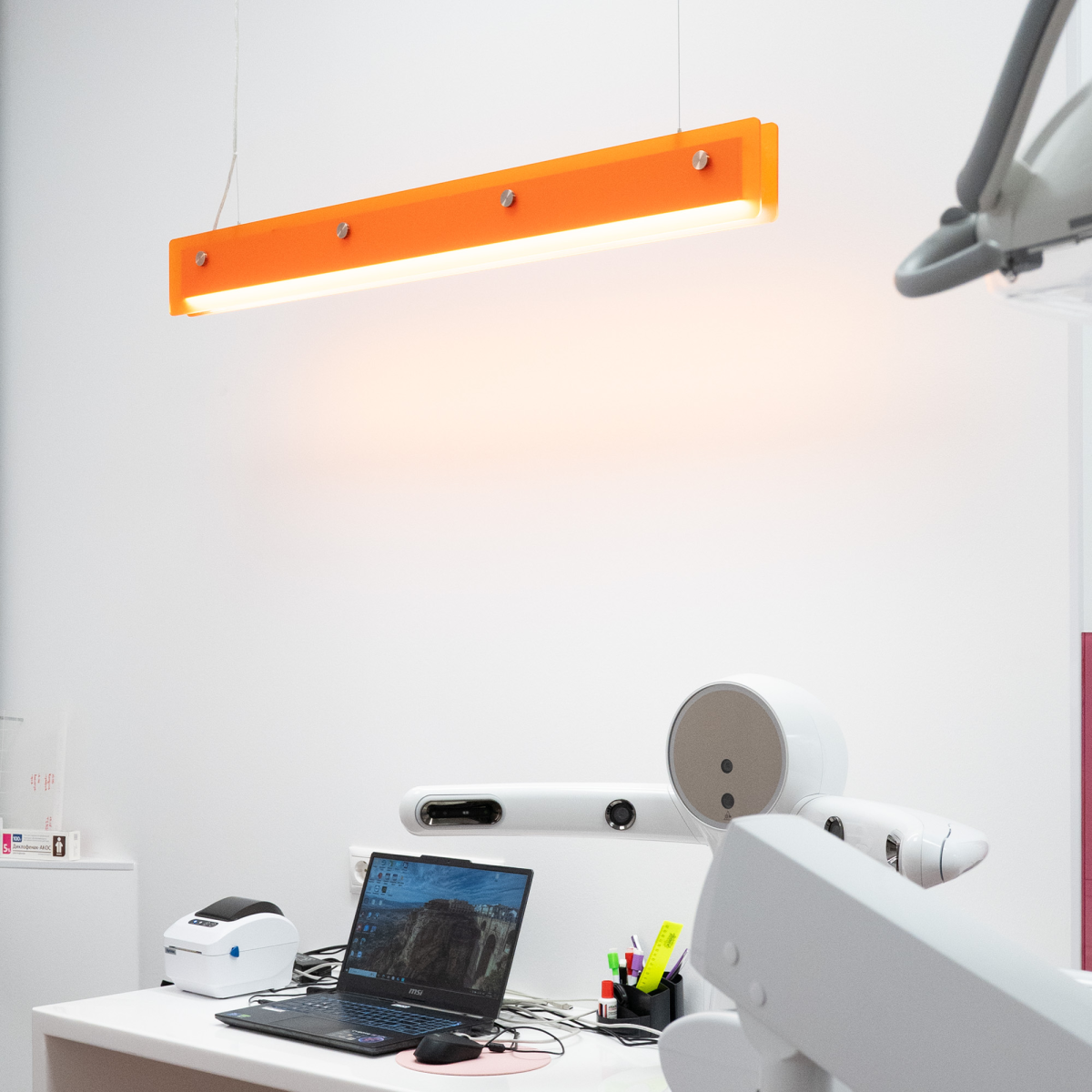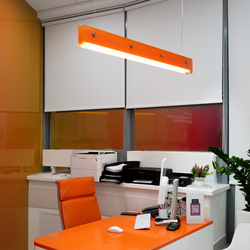 Для большего комфорта используются декоративные боковые панели, которые прячут световую часть, защищая глаза от слепящего воздействия источника света. Это позволяет размещать светильник ближе к пользователю, например, над столом в переговорной комнате.