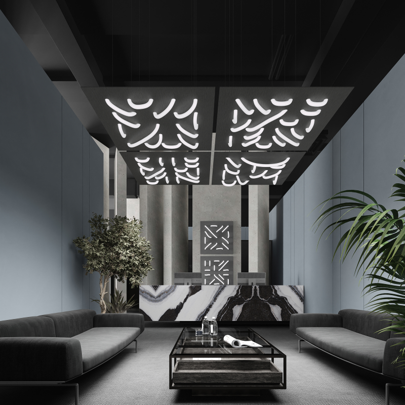 Модули можно свободно комбинировать, создавая уникальные формы и масштабируя идею под задачи проекта, а монтаж возможен как на потолке, так и на вертикальных поверхностях.