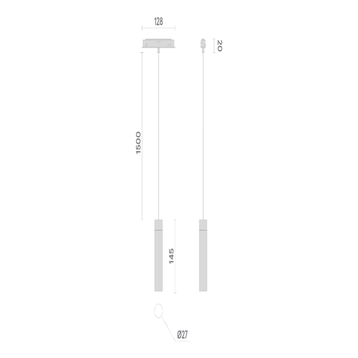 - DxH 27x145мм. Длина подвеса 1,5м – не включает в себя длину светильника