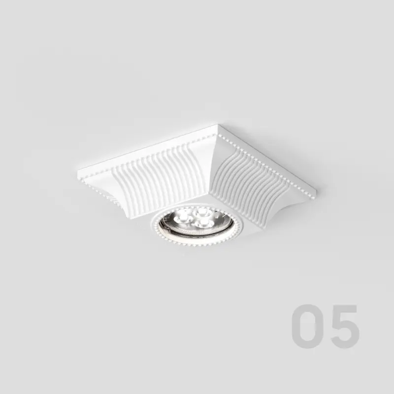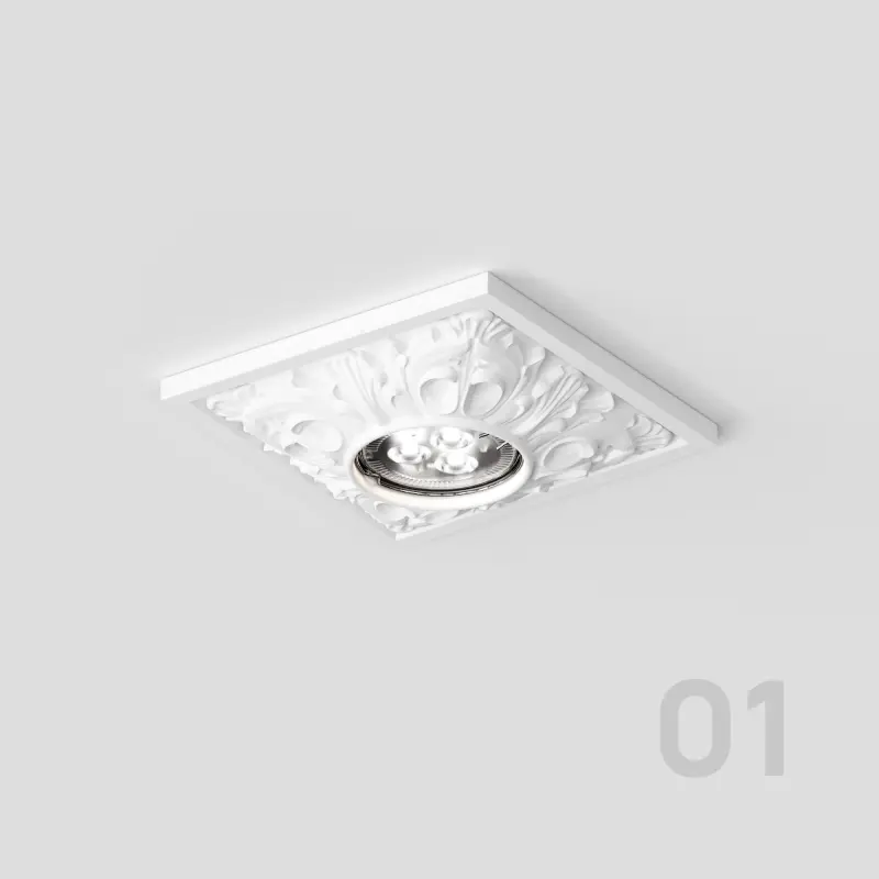 Гипсовые светильники серии NUMA встраиваются в поверхность потолка. Простая и удобная установка не требует специальной квалификации монтажников, что позволяет создать необычный дизайн в короткие сроки и при минимальных затратах.