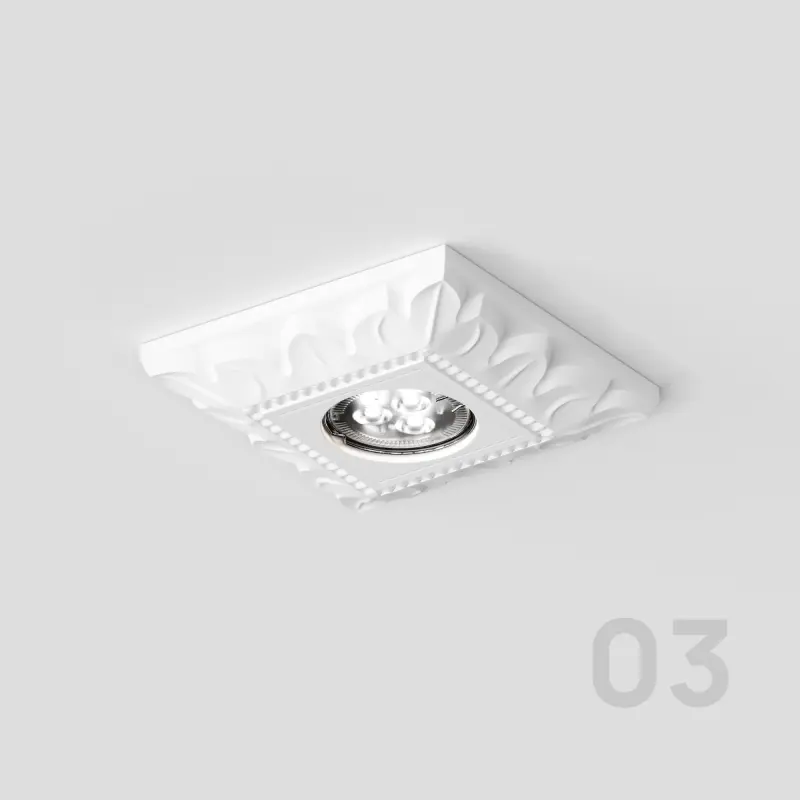 - NUMA 08 – квадратный светильник с рельефом «Угловые вензеля»