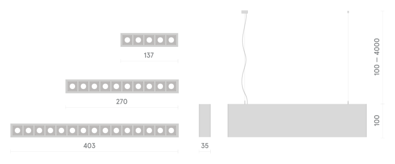 - Увеличение длины подвеса и кабеля подключения (2000, 3000, 4000 мм)