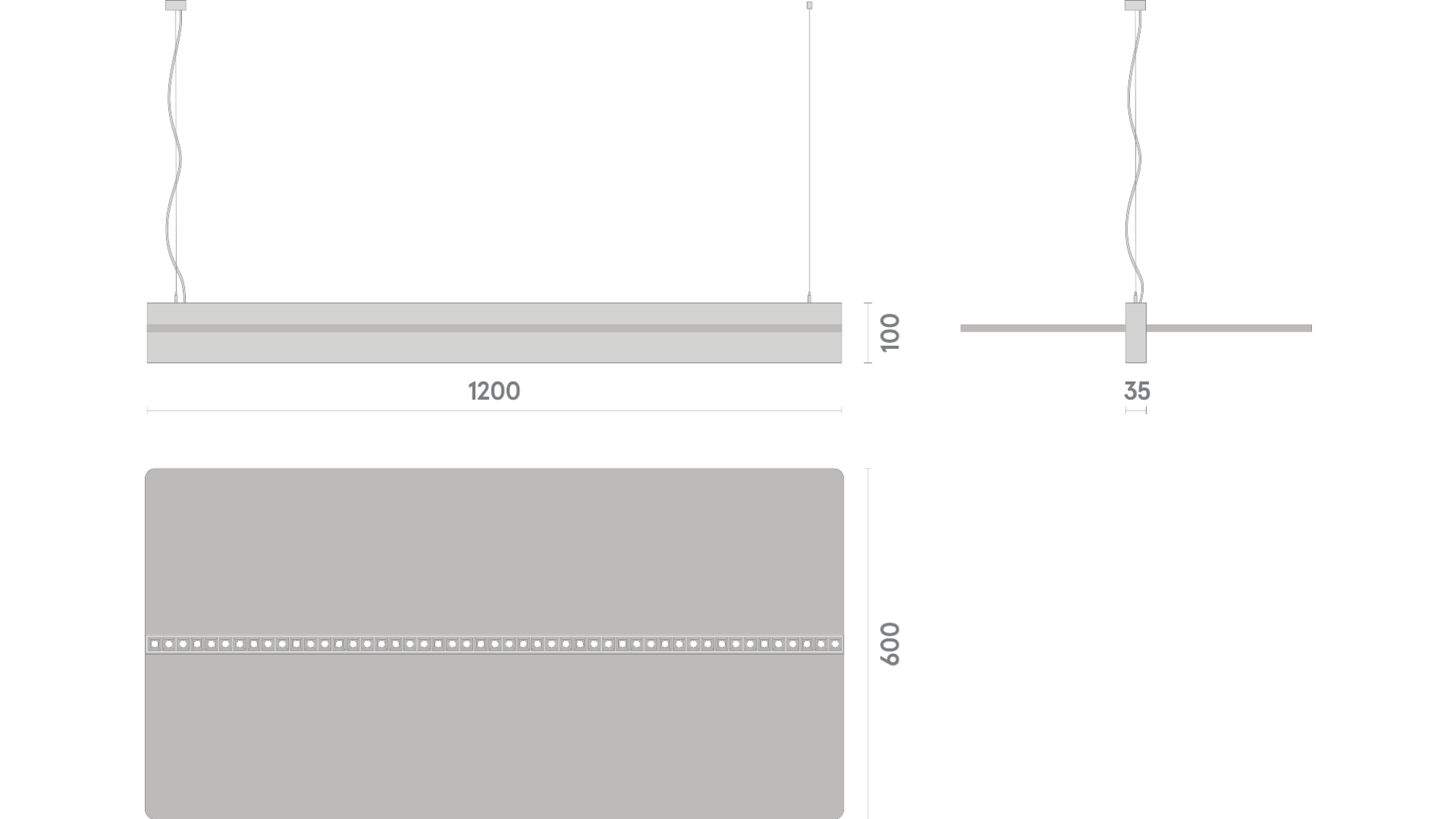 Форм-фактор: Подвесной линейный светильник, обрамленный функциональными акустическими панелями со встроенным блоком питания.