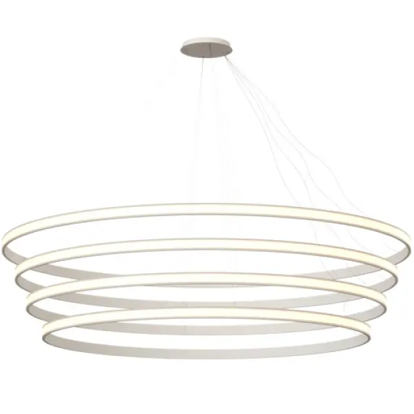 К заказу доступны как базовые конфигурации светильника, с ограниченным количеством светящихся элементов (2-7 шт.), так и нестандартные решения. В размерном ряду представлено 22 диаметра колец светильника от компактных (d 615 мм) до и крупногабаритных, с диаметром более двух метров.