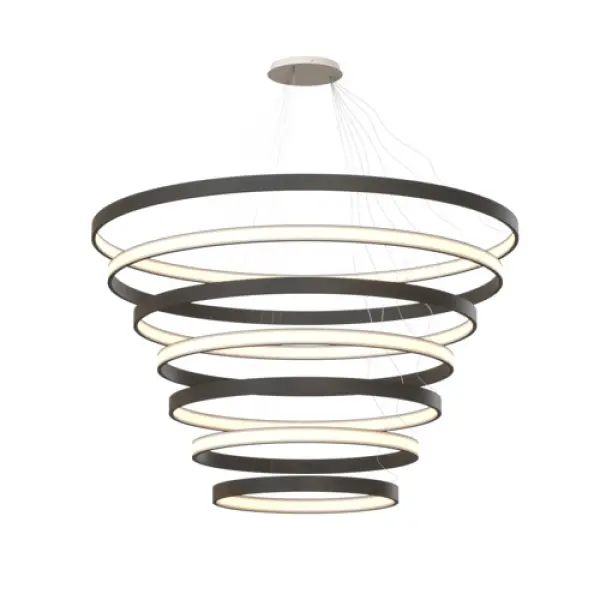 Серия подвесных светодиодных светильников ORIO CASCADE представлена торговой маркой БОСМА. Светильник выполнен в виде композиции из ниспадающих светящихся колец. Светящаяся поверхность может быть внутри или снаружи кольца. Драйвер расположен в декоративном боксе, с помощью которого осуществляется крепление светильника к плоскости потолка. Светильник поставляется с комплектом регулируемых подвесов.