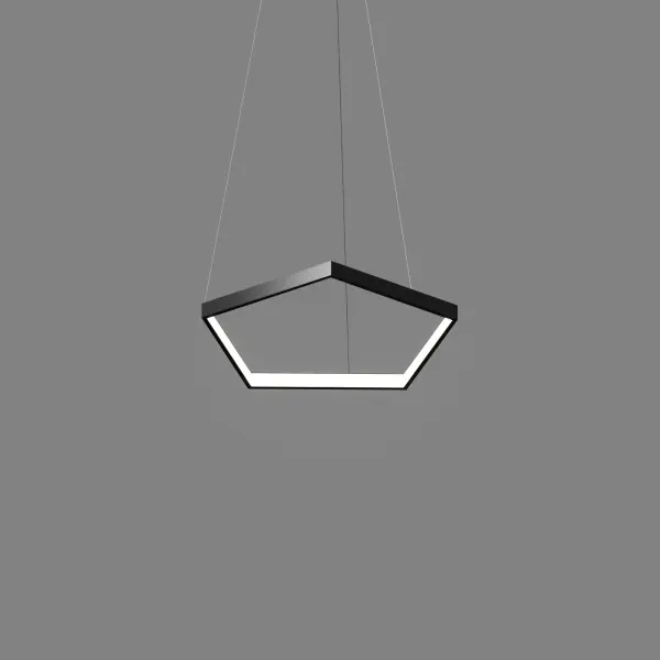 Серия подвесных светодиодных светильников ORIO PENDO (торговая марка БОСМА). Светильник представляет собой пятиугольник толщиной 14 мм и высотой 52 мм. Источник света расположен на внутренней поверхности светильника. Драйвер расположен в декоративном драйвер боксе, с помощью которого осуществляется крепление к плоскости потолка. Светильник поставляется с комплектом регулируемых подвесов.