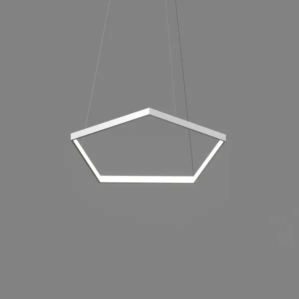 Серия подвесных светодиодных светильников ORIO PENDO (торговая марка БОСМА). Светильник представляет собой пятиугольник толщиной 14 мм и высотой 52 мм. Источник света расположен на внутренней поверхности светильника. Драйвер расположен в декоративном драйвер боксе, с помощью которого осуществляется крепление к плоскости потолка. Светильник поставляется с комплектом регулируемых подвесов.
