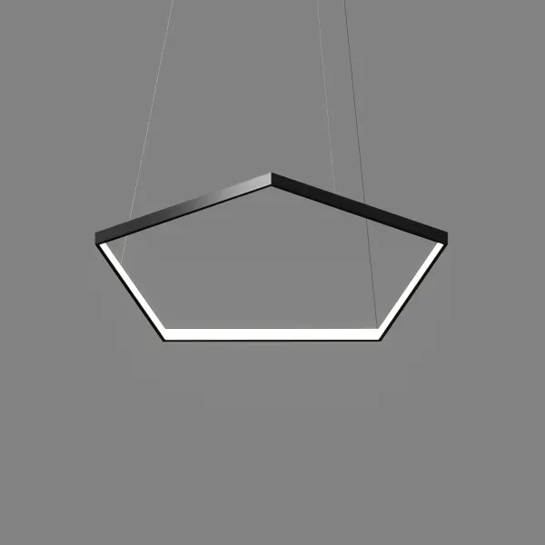 Серия подвесных светодиодных светильников ORIO PENDO (торговая марка БОСМА). Светильник представляет собой пятиугольник толщиной 14 мм и высотой 52 мм. Источник света расположен на внутренней поверхности светильника. Драйвер расположен в декоративном драйвер боксе, с помощью которого осуществляется крепление к плоскости потолка. Светильник поставляется с комплектом регулируемых подвесов.