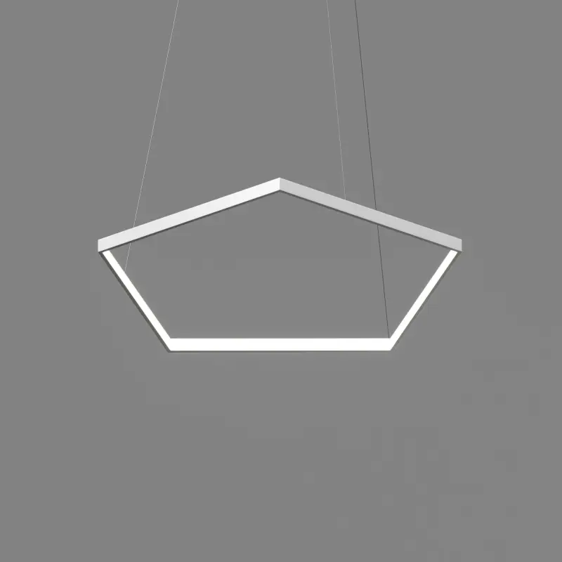 Серия подвесных светодиодных светильников ORIO PENDO (торговая марка БОСМА). Светильник представляет собой пятиугольник толщиной 14 мм и высотой 52 мм. Источник света расположен на внутренней поверхности светильника. Драйвер расположен в декоративном драйвер боксе, с помощью которого осуществляется крепление к плоскости потолка. Светильник поставляется с комплектом регулируемых подвесов.
