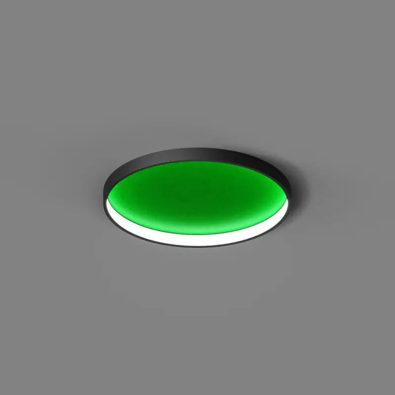 Светильник представляет собой плоское кольцо толщиной 14 мм и высотой 54 мм. Отличительная особенность моделей – декоративная панель, образующая верхнюю плоскость светильника. Доступные цвета корпуса/панели: белый/белый, черный/черный, белый/зеленый, черный/зеленый. Драйвер расположен в декоративном драйвер боксе, с помощью которого осуществляется крепление к плоскости потолка. Светильник поставляется с комплектом регулируемых подвесов.