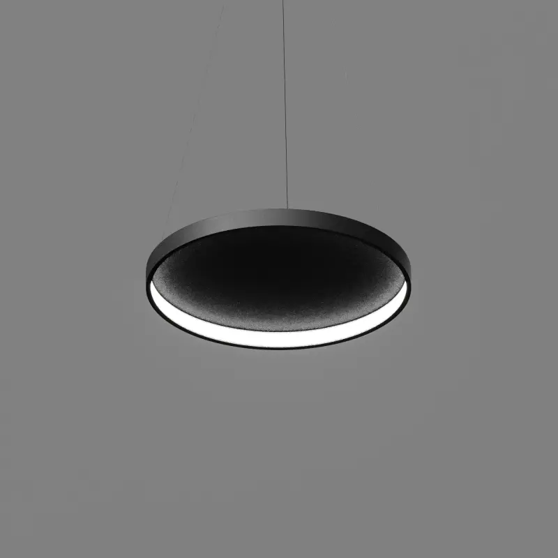 Светильник представляет собой плоское кольцо толщиной 14 мм и высотой 54 мм. Отличительная особенность моделей – декоративная панель, образующая верхнюю плоскость светильника. Доступные цвета корпуса/панели: белый/белый, черный/черный, белый/зеленый, черный/зеленый. Драйвер расположен в декоративном драйвер боксе, с помощью которого осуществляется крепление к плоскости потолка. Светильник поставляется с комплектом регулируемых подвесов.
