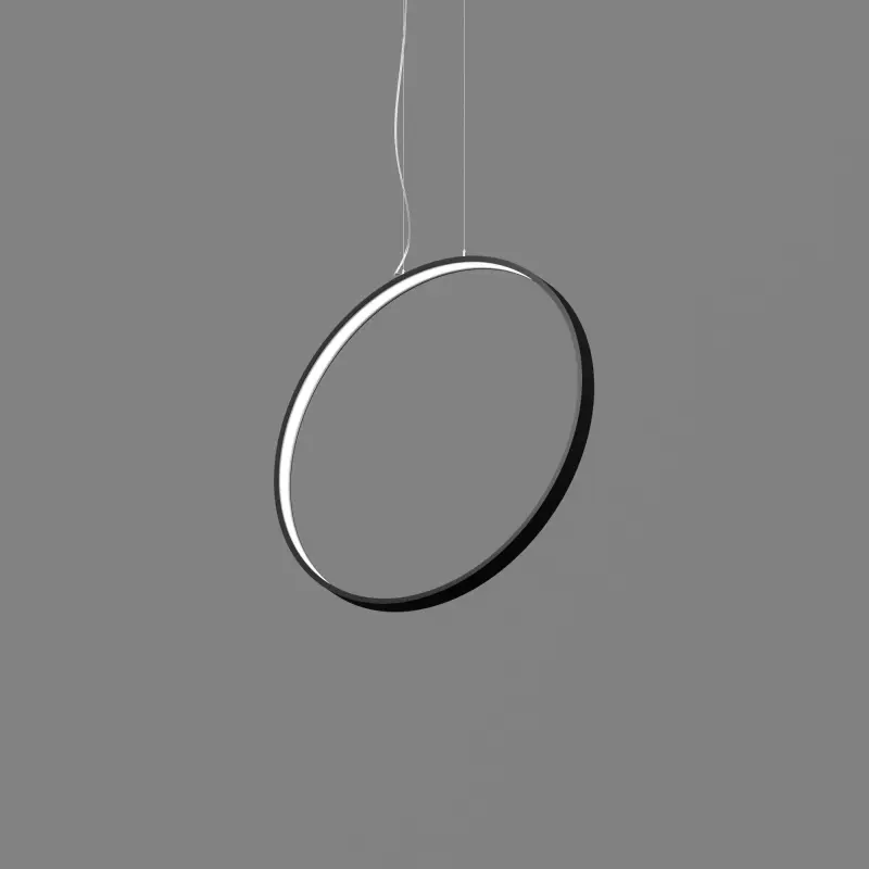 Серия подвесных светодиодных светильников кольцеобразной формы ORIO VERTICAL (торговая марка БОСМА). Светильник представляет собой подвешенное вертикально плоское кольцо толщиной 52 мм и высотой 14 мм. Источник света может быть расположен на внутренней (версия IN) или на внешней поверхности кольца (версия OUT). Драйвер расположен в декоративном драйвер боксе, с помощью которого осуществляется крепление к плоскости потолка. Светильник поставляется с комплектом регулируемых подвесов.