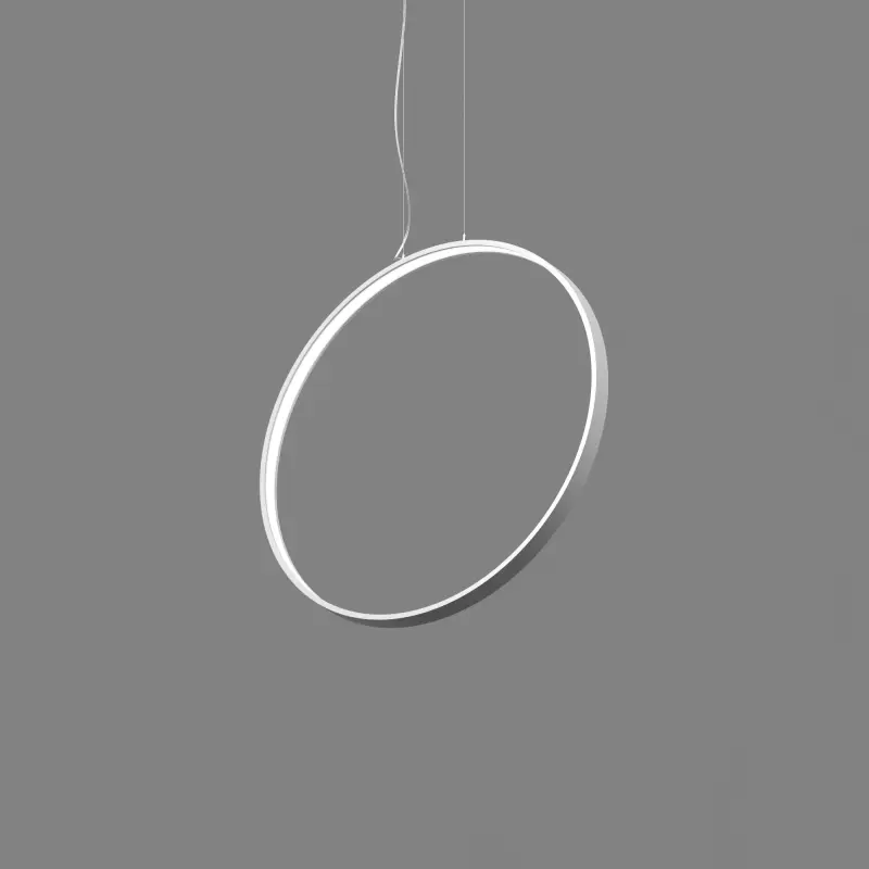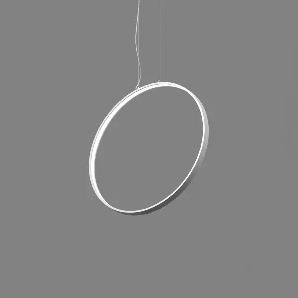 Серия подвесных светодиодных светильников кольцеобразной формы ORIO VERTICAL (торговая марка БОСМА). Светильник представляет собой подвешенное вертикально плоское кольцо толщиной 52 мм и высотой 14 мм. Источник света может быть расположен на внутренней (версия IN) или на внешней поверхности кольца (версия OUT). Драйвер расположен в декоративном драйвер боксе, с помощью которого осуществляется крепление к плоскости потолка. Светильник поставляется с комплектом регулируемых подвесов.