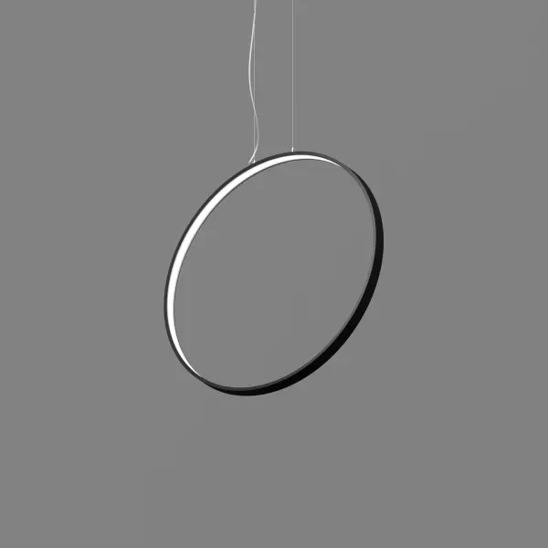 Серия подвесных светодиодных светильников кольцеобразной формы ORIO VERTICAL (торговая марка БОСМА). Светильник представляет собой подвешенное вертикально плоское кольцо толщиной 52 мм и высотой 14 мм. Источник света может быть расположен на внутренней (версия IN) или на внешней поверхности кольца (версия OUT). Драйвер расположен в декоративном драйвер боксе, с помощью которого осуществляется крепление к плоскости потолка. Светильник поставляется с комплектом регулируемых подвесов.