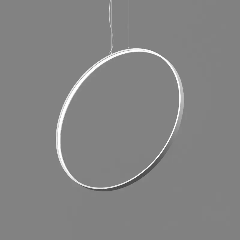 Серия подвесных светодиодных светильников кольцеобразной формы ORIO VERTICAL (торговая марка БОСМА). Светильник представляет собой подвешенное вертикально плоское кольцо толщиной 52 мм и высотой 14 мм. Источник света может быть расположен на внутренней (версия IN) или на внешней поверхности кольца (версия OUT). Драйвер расположен в декоративном драйвер боксе, с помощью которого осуществляется крепление к плоскости потолка. Светильник поставляется с комплектом регулируемых подвесов.